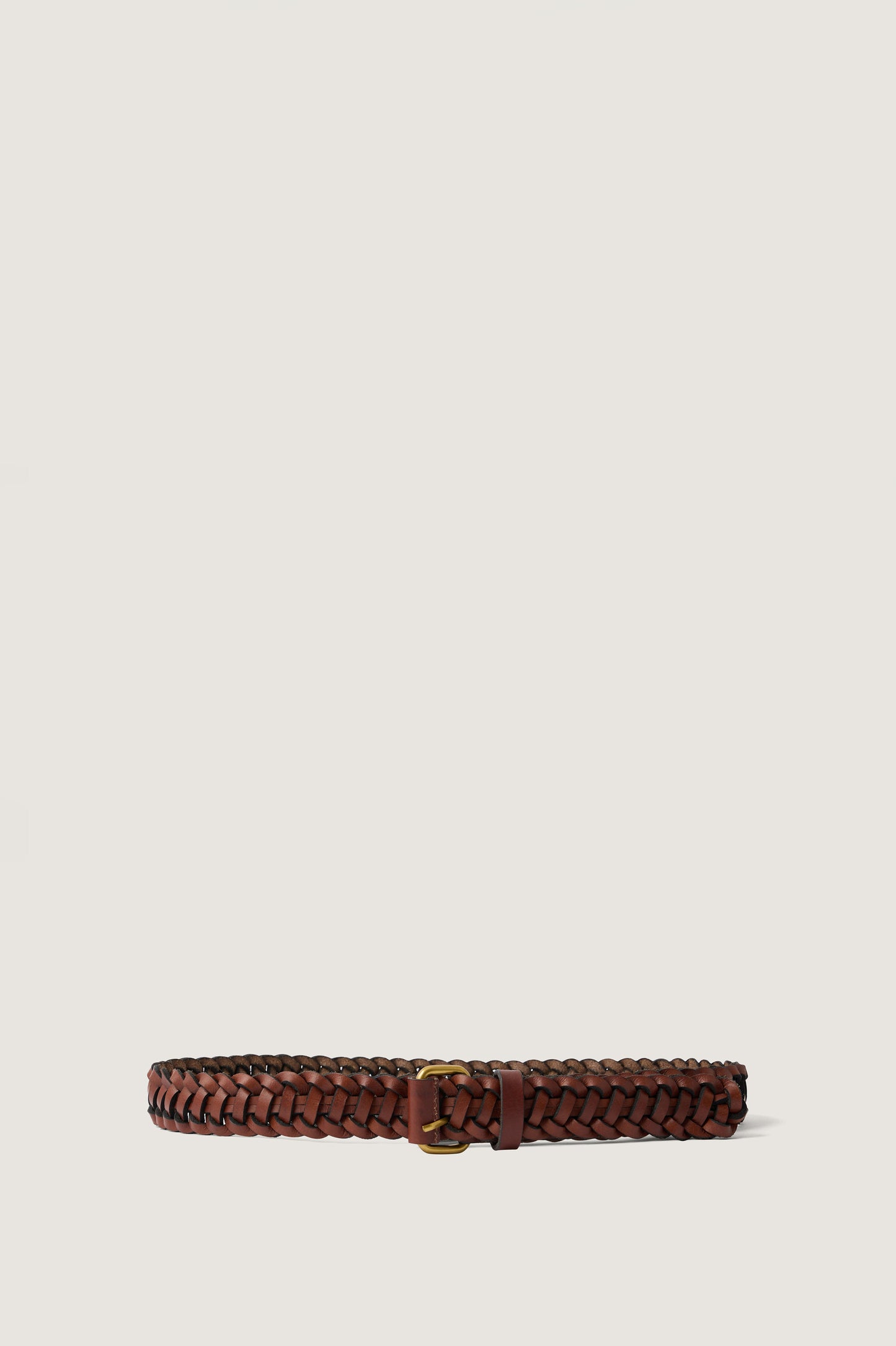 AGORA is an adjustable braided leather belt (without a defined notch). It's perfect for threading through the loops of a pair of pants, or cinching around a jacket, a dress, or a thick sweater to provide structure to your outfit.