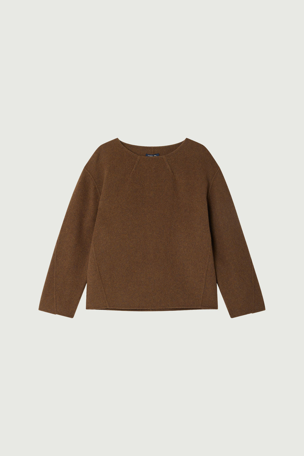 AMEDEE is a short, loose-fitting jumper made from warm wool fabric. It stands out with dart details at the bottom of the body and on the sleeves, enhancing its rounded shape. The double-faced wool is particularly insulating, keeping you very warm while remaining supple and soft.