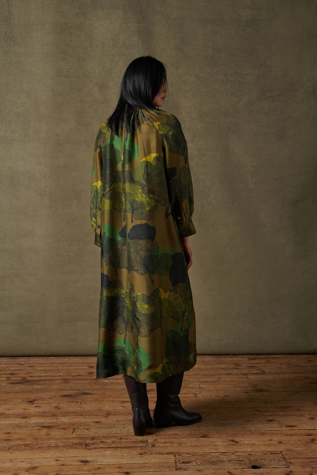 SAVANE is a long dress. It has a shirt collar that can be opened to suit your look. It's a dress that can be worn all season long, either open or with a turtleneck underneath, for example.